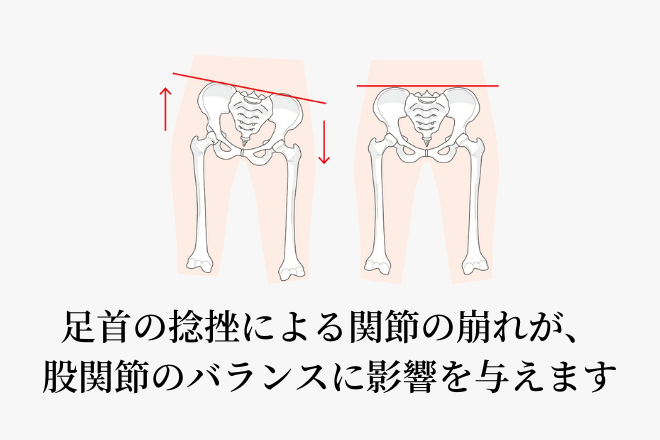 足元のバランスが崩れることで、体全体で帳尻を合わす必要があり、骨盤の歪みにも繋がっていました。