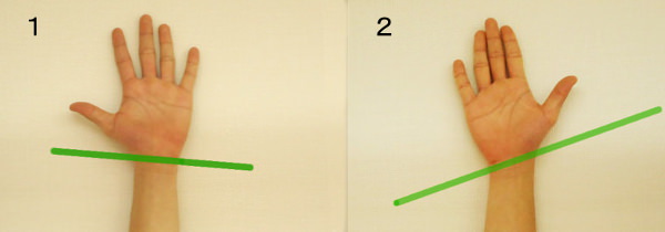 ポイントとなるのは、「手首のシワの傾き具合」です。