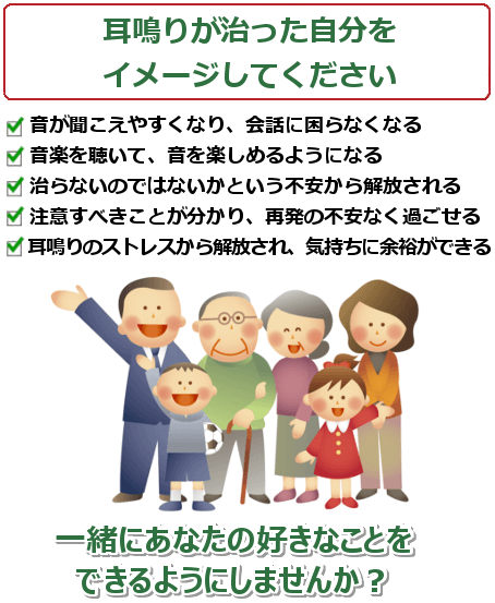 耳鳴りのストレスから解放され、毎日が楽しく、不安なく過ごせるのではないでしょうか。